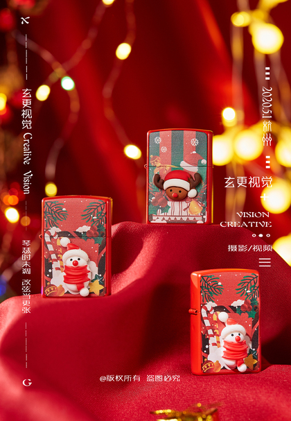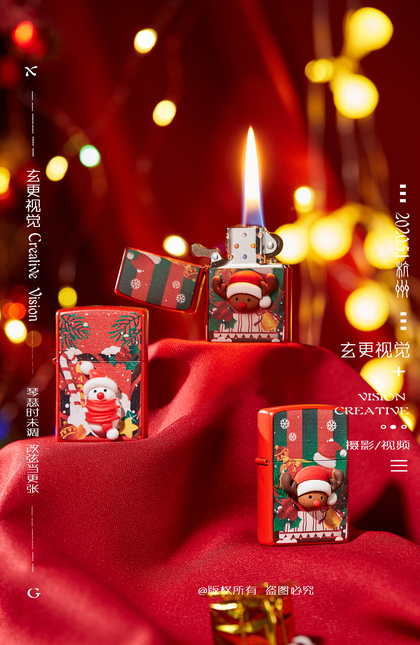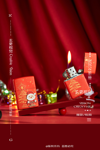 zip打火机拍摄 圣诞款 打火机摄影 静物创意摄影 义乌