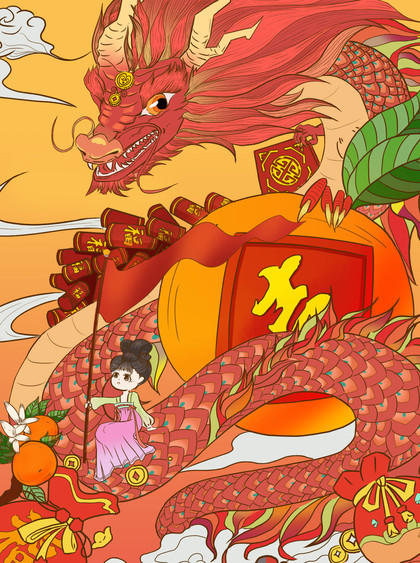 龙年大桔原创插画