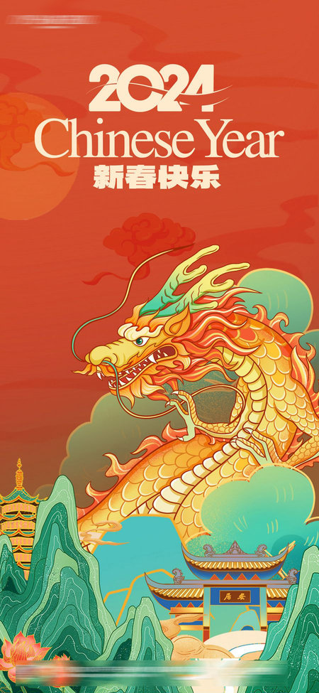 新春快乐,龙年大吉,接好运