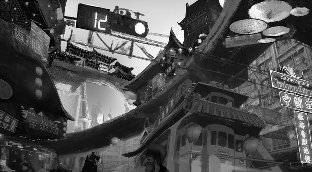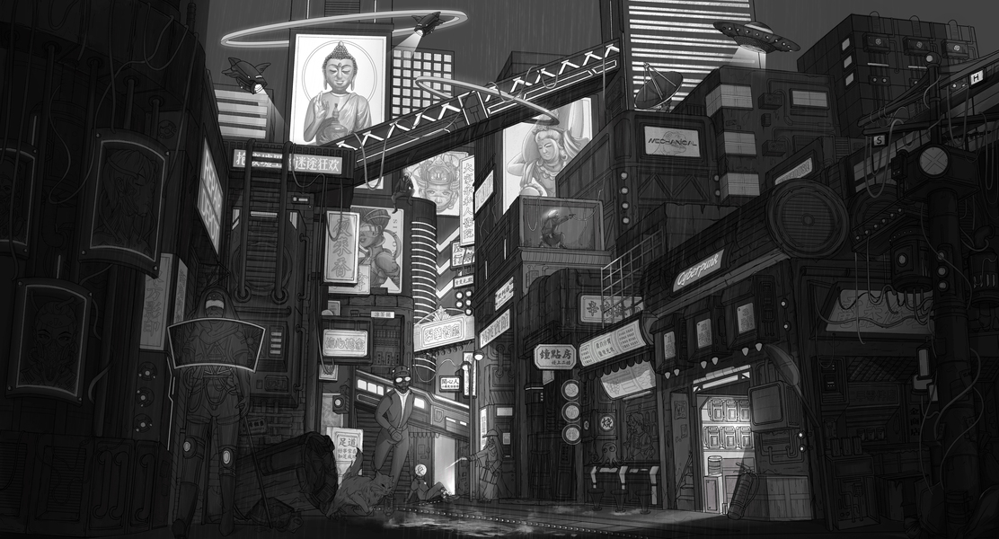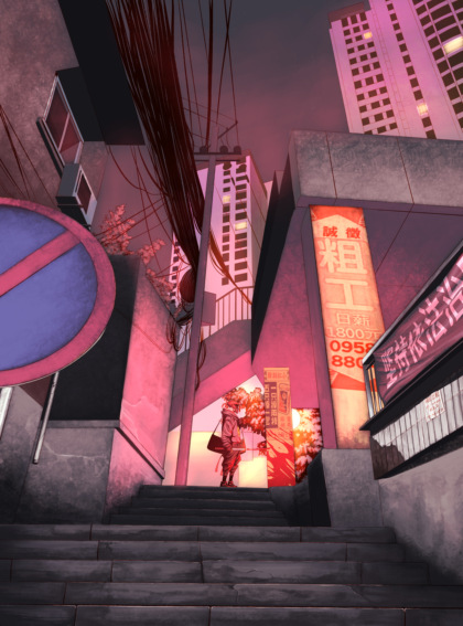 赛博朋克 霓虹街道场景(霓虹灯 + 水渍)临摹练习