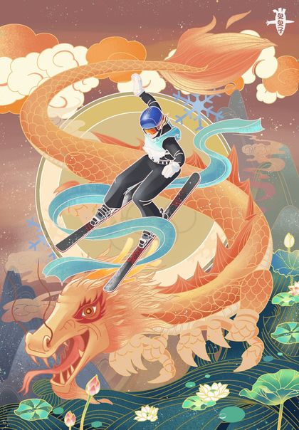 冬奥国潮插画 谷爱凌