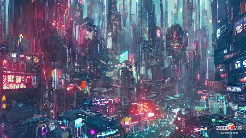 #AI创作实验室#变异的怪物横行在赛博朋克的城市中
