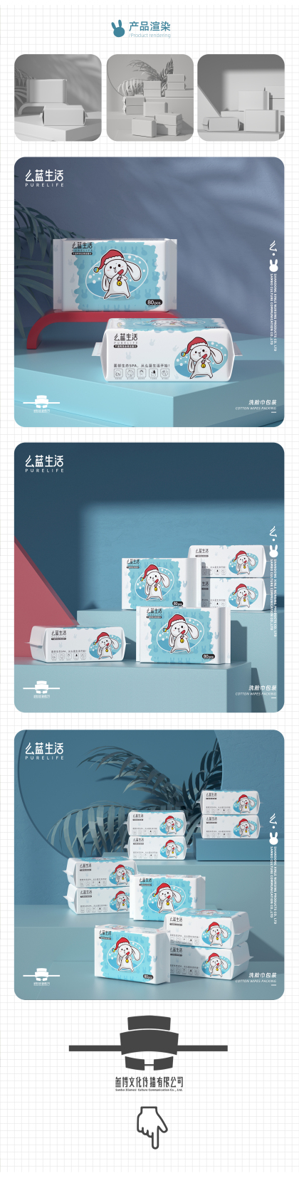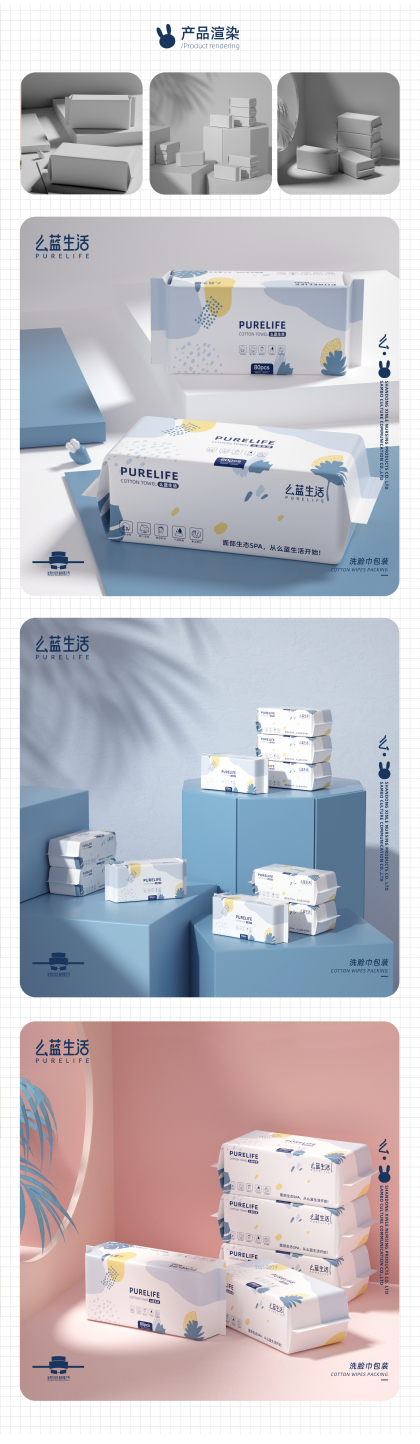 么蓝生活洗脸巾案例——包装设计、产品渲染