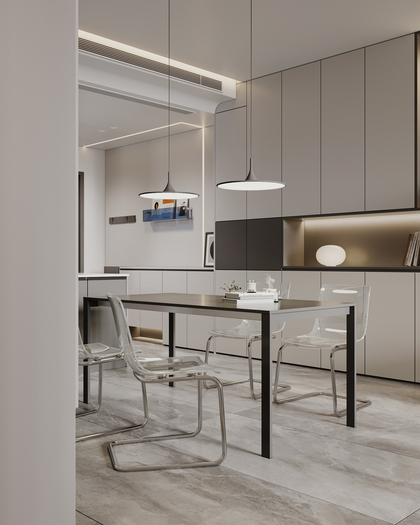 129㎡现代简约风,转角悬空柜,增加收纳方便打扫