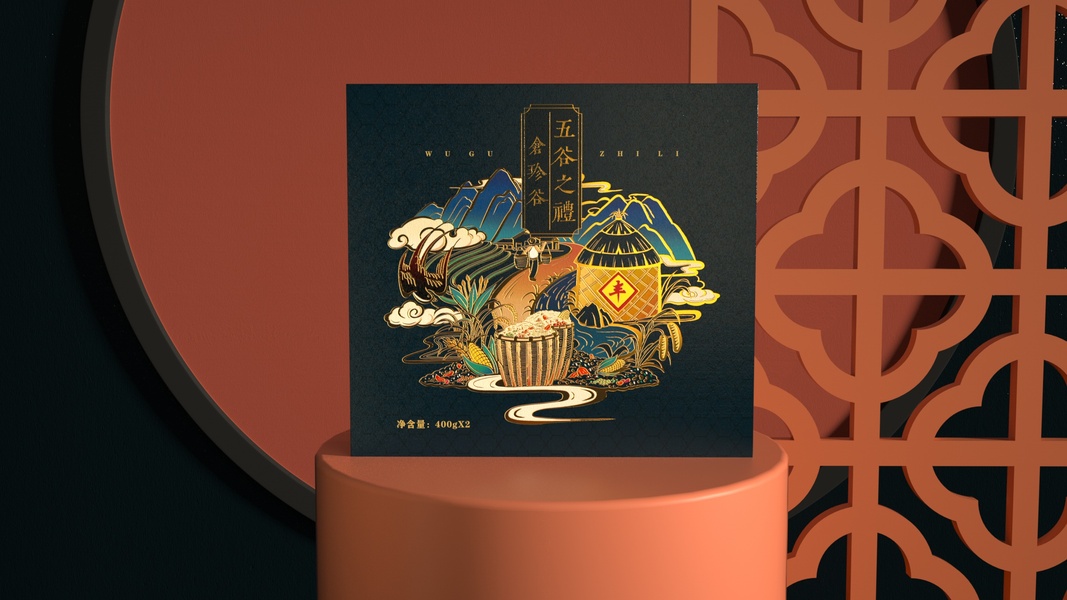 仓珍谷杂粮礼盒手绘包装设计