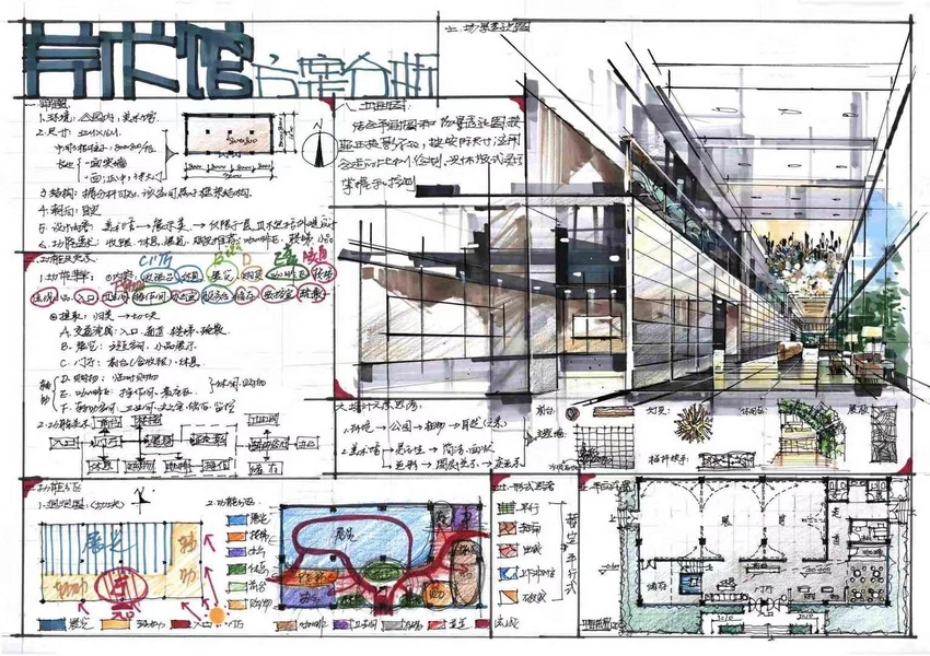 合一设计教育 室内手绘 考研快题手绘(一)学员作品