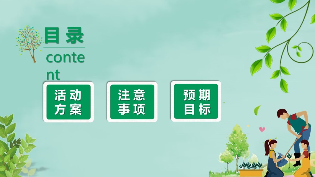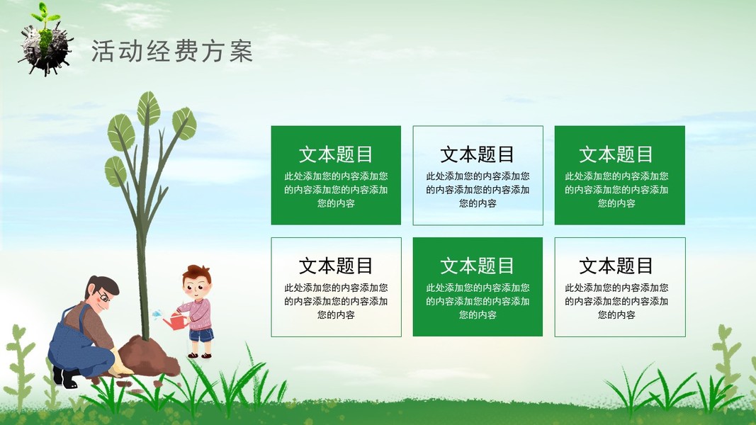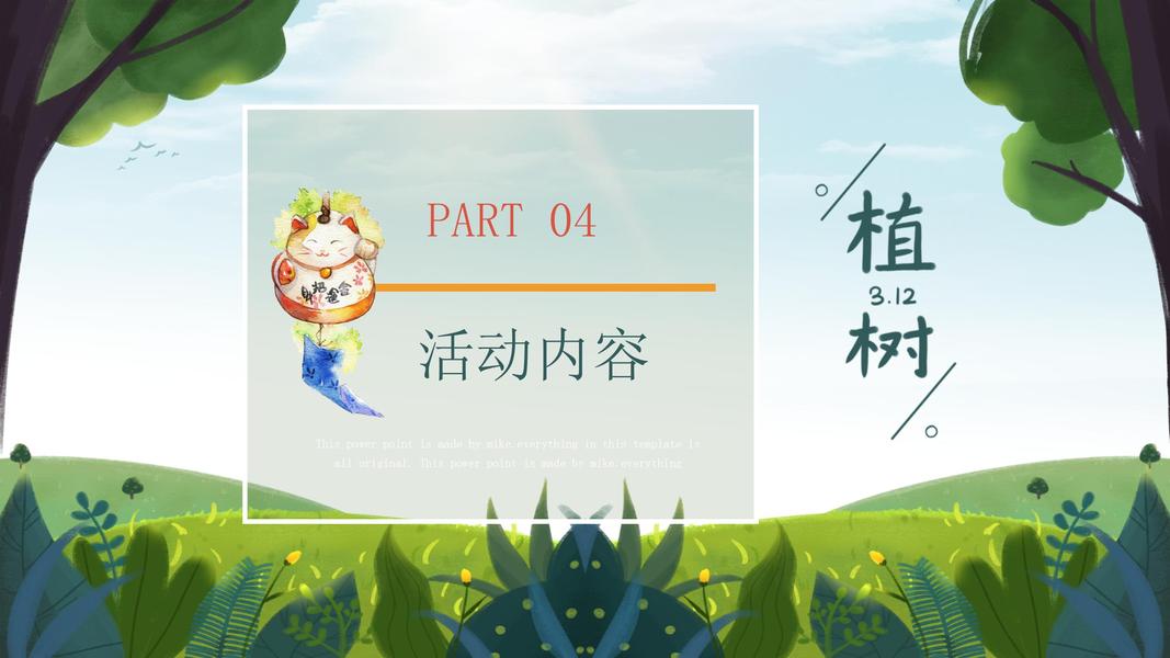 小清新儿童卡通植树节活动策划教学课件PPT模板