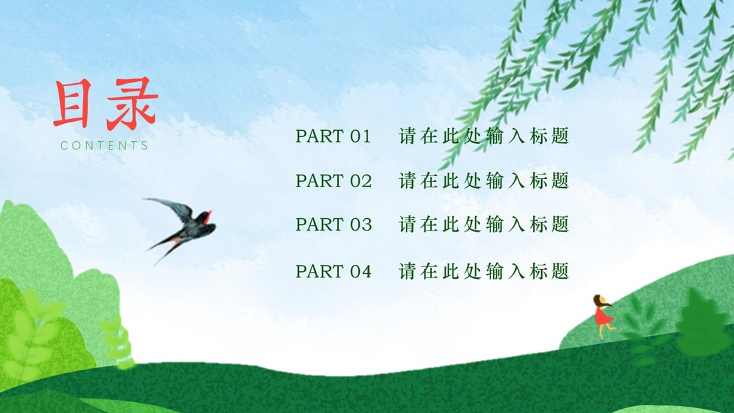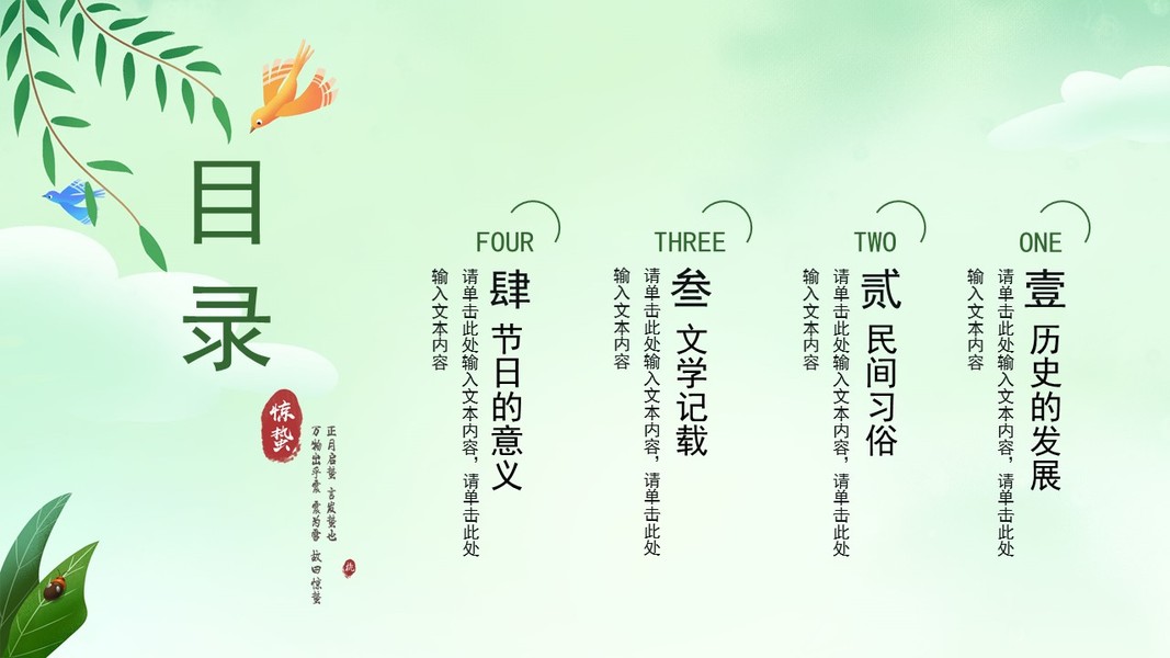 绿色清新风二十四节气惊蛰文化介绍PPT模板