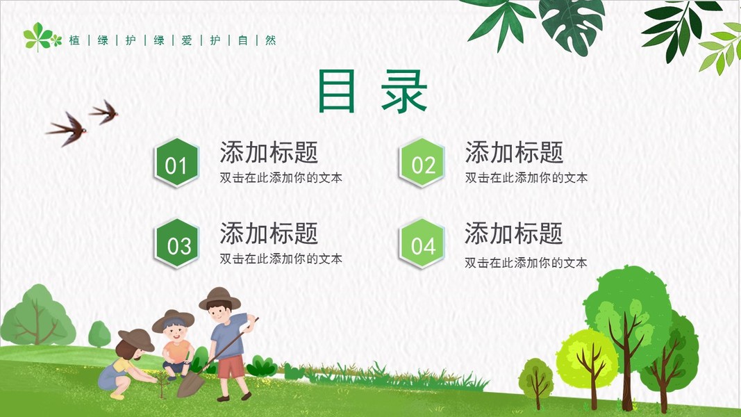 简约时尚绿色植树节保护地球爱护大自然宣传PPT模板