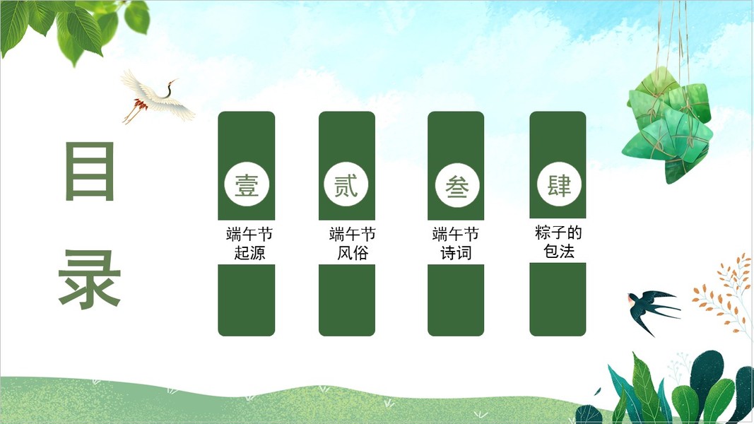 清新绿色浓情端午节历史习俗介绍PPT模板