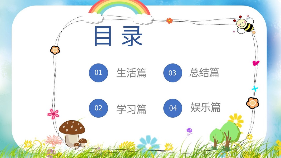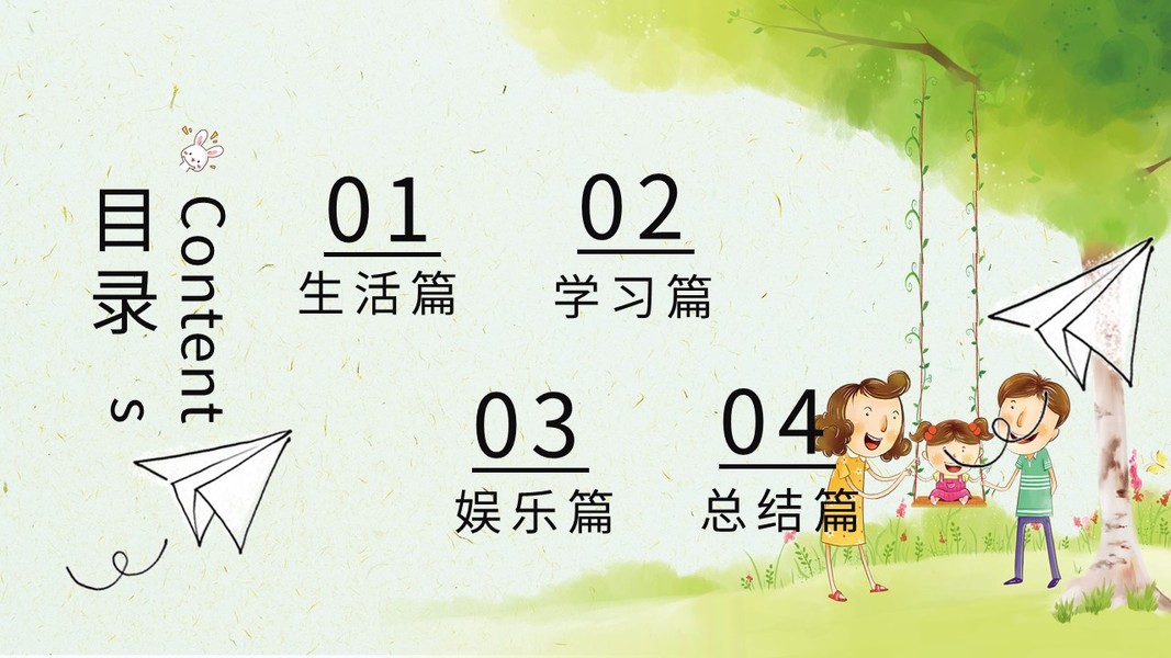 清新卡通风我的快乐暑假生活纪念相册PPT模板