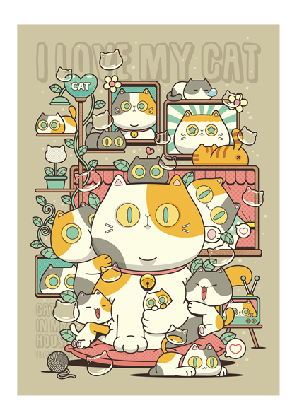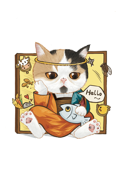 头顶猫粮,心中不慌——一组猫咪涂鸦