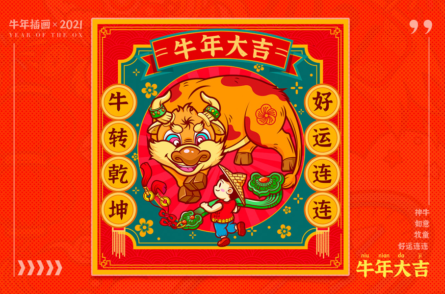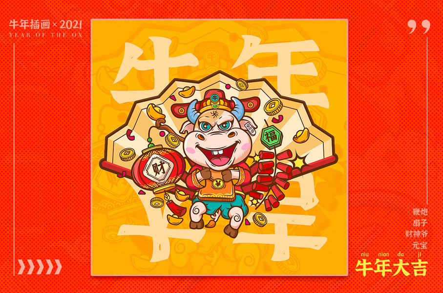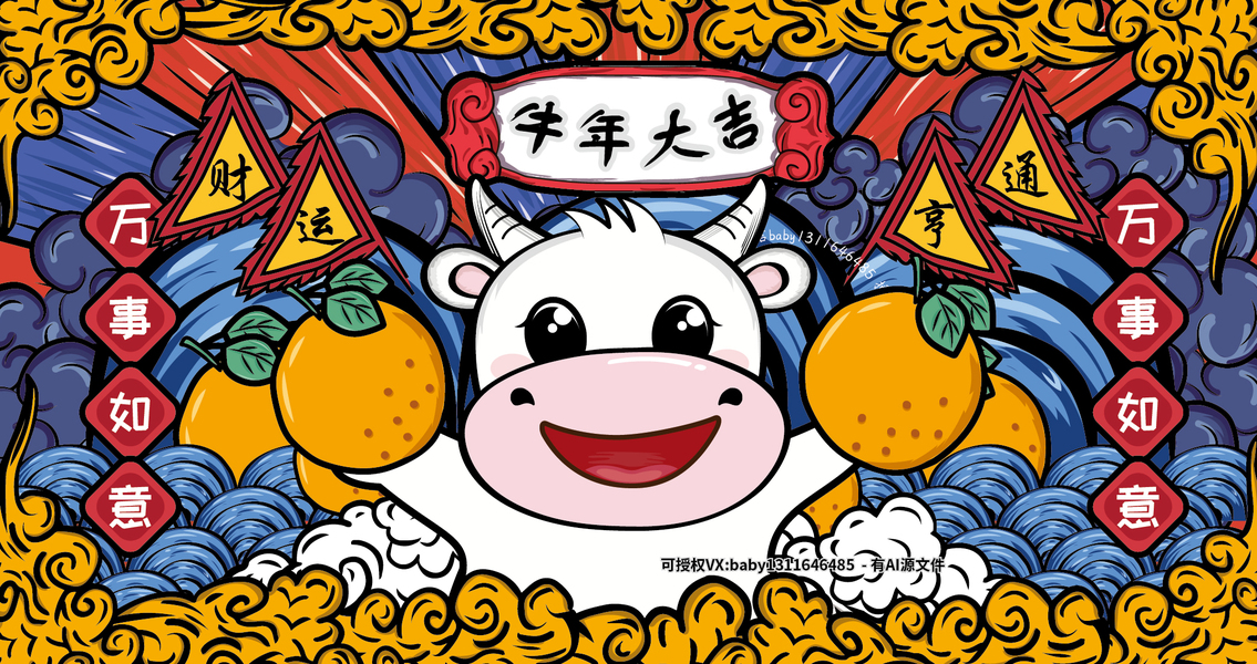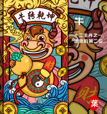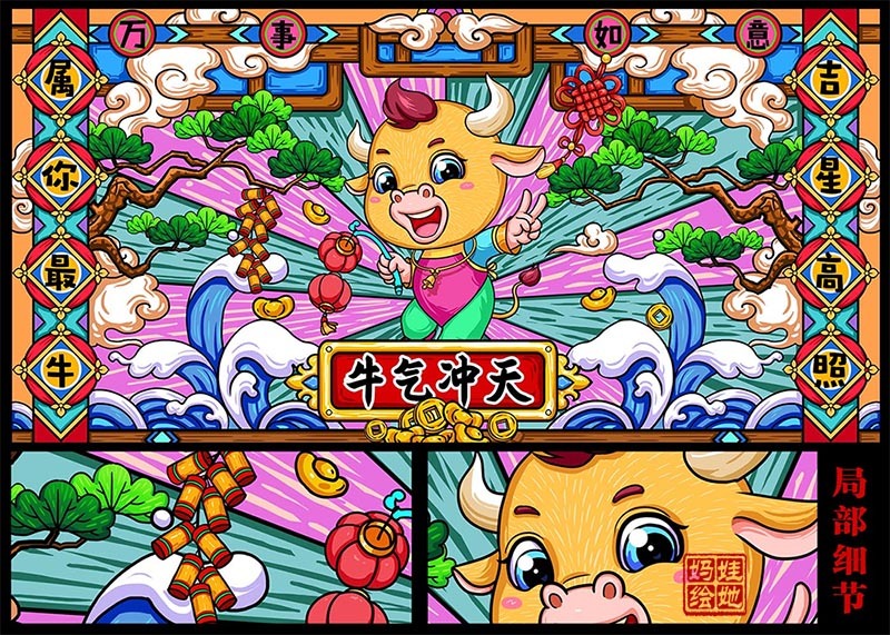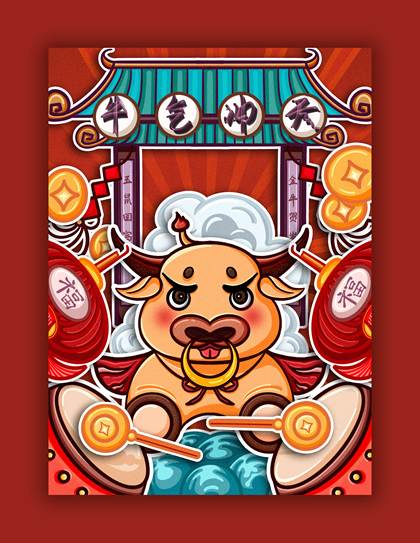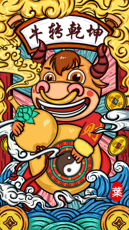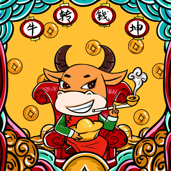 卡通 手绘 漫画 国潮 新年 牛年卡通人物