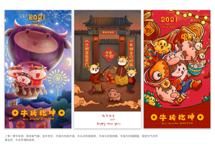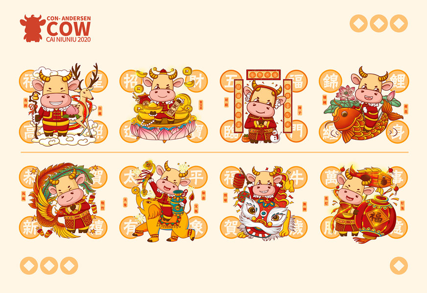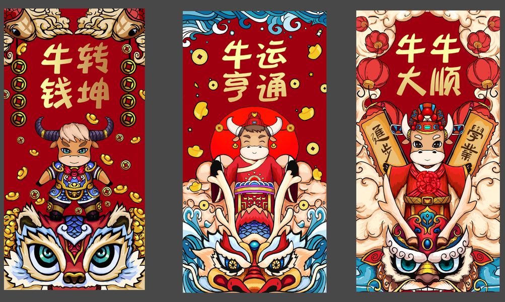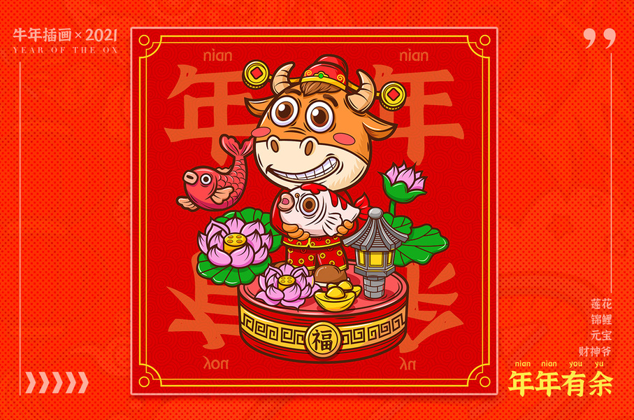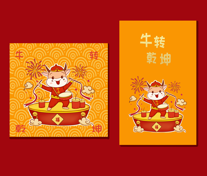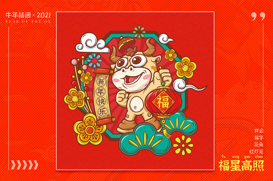 卡通 手绘 漫画 国潮 新年 牛年卡通人物