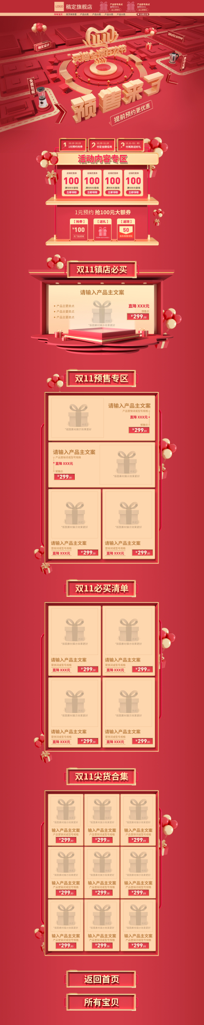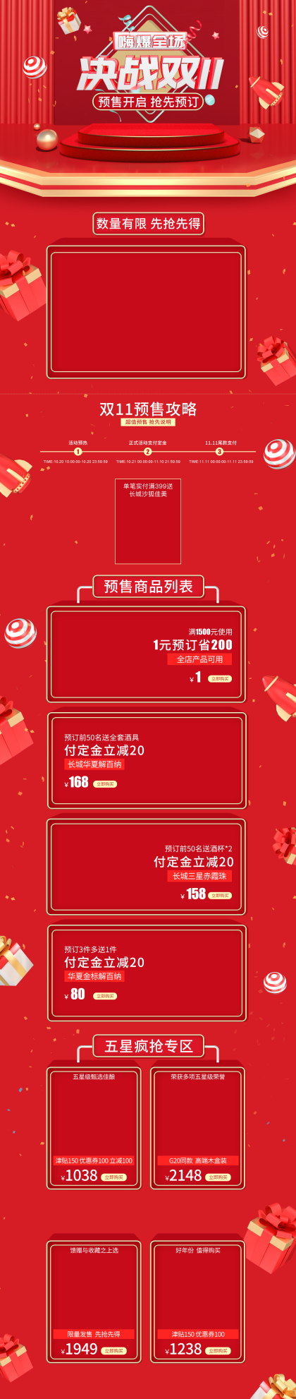 红色活动首页模板预售双11双12大促首页C4D立体简约风