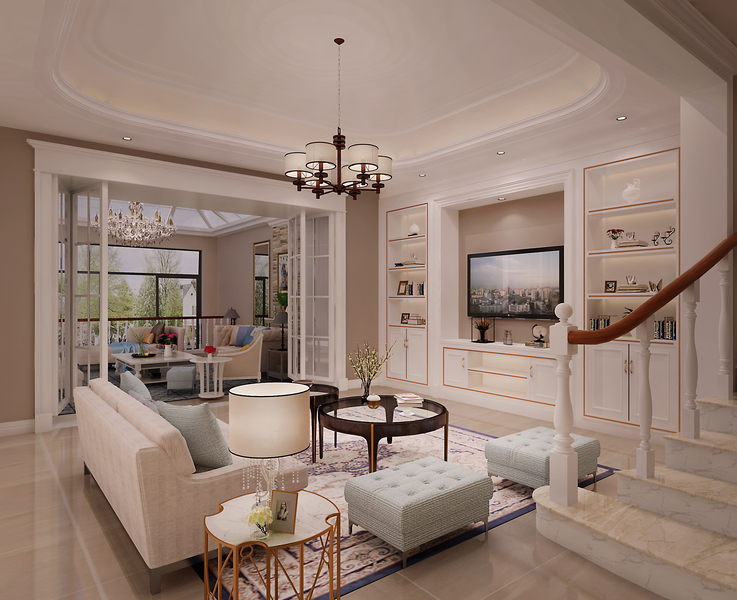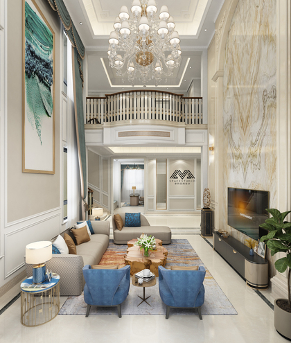 郑州别墅装修自建房430平方现代美式风格装修效果图