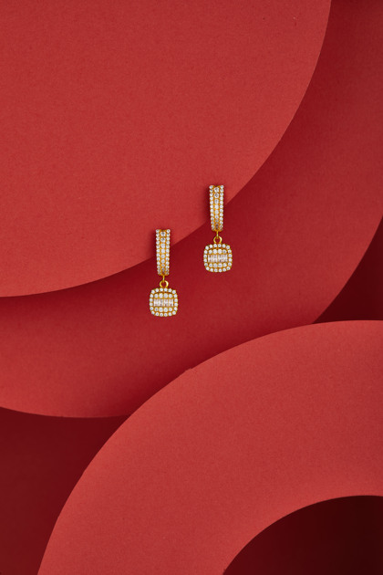 珠宝首饰拍摄 红色中国风简约光影耳饰场景拍摄