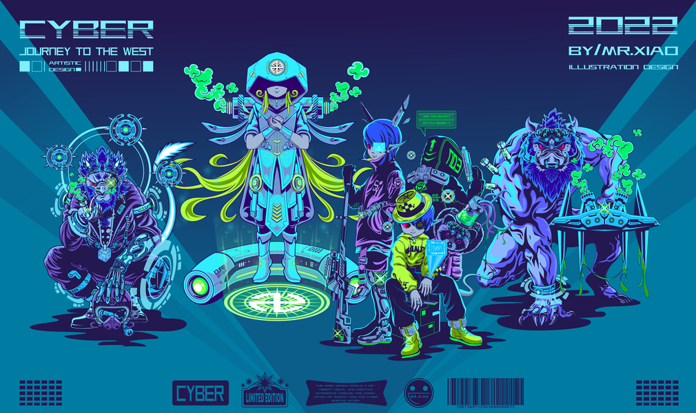 原创矢量插画/赛博朋克西游 #创作加油站#