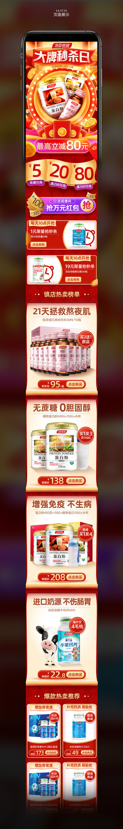 汤臣倍健拼多多店铺活动页保健品电商合成手绘类专题页