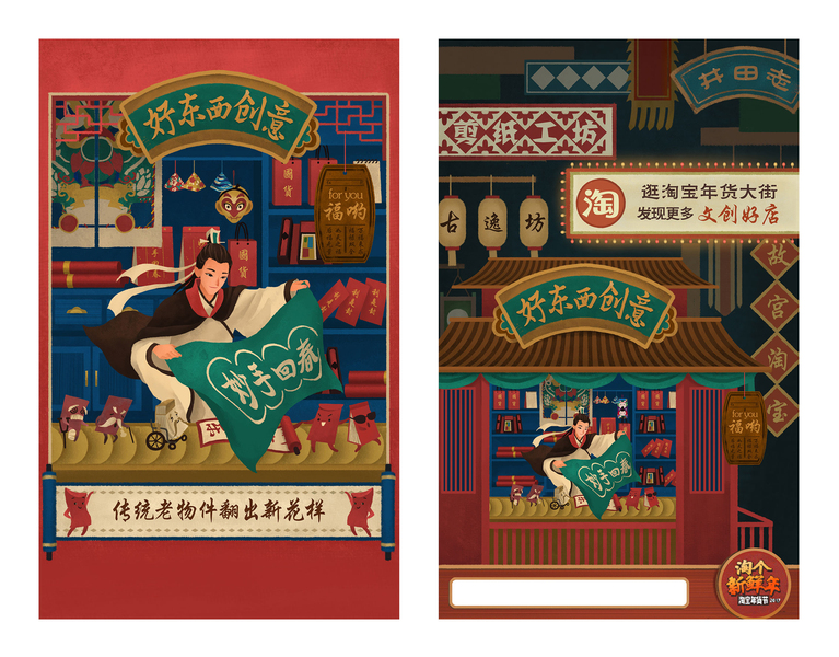 淘宝年货节“年货大街”系列 天与空&罗雨舒插画