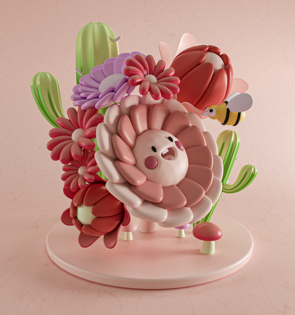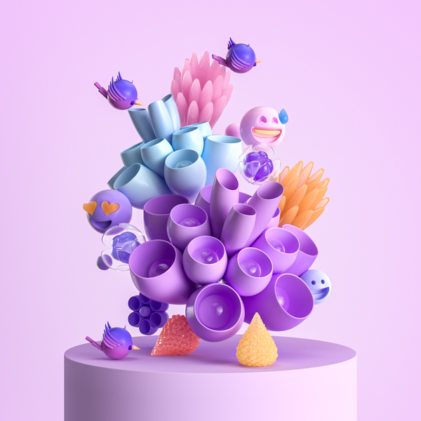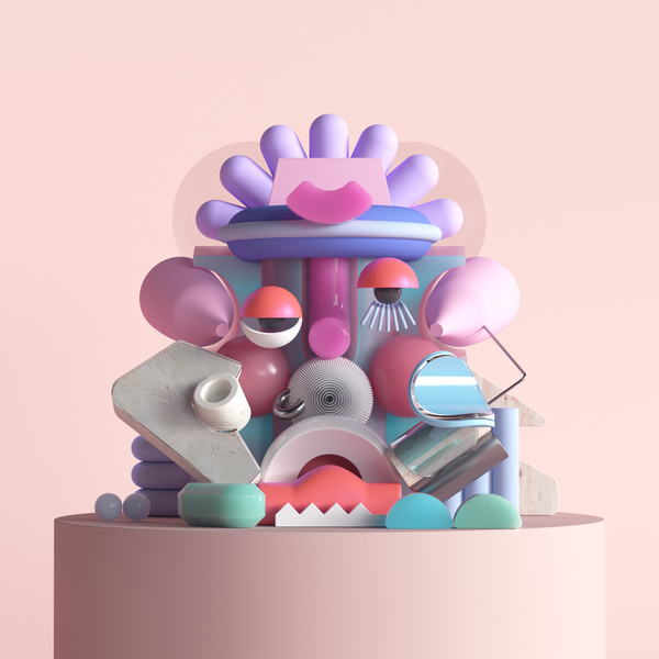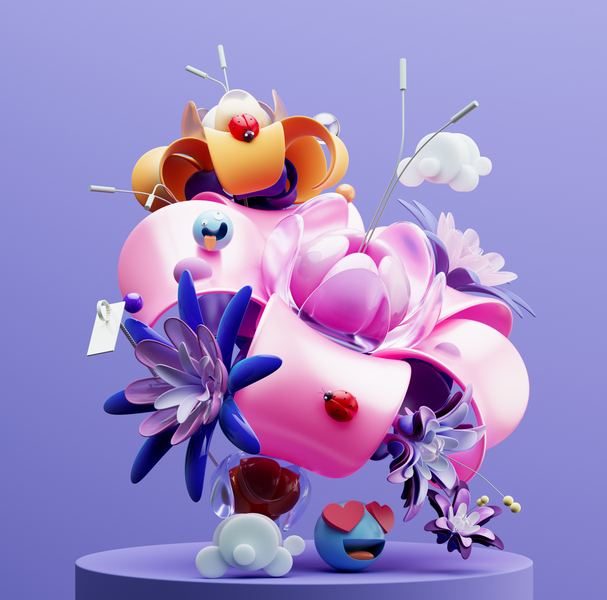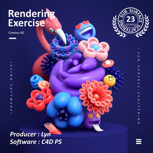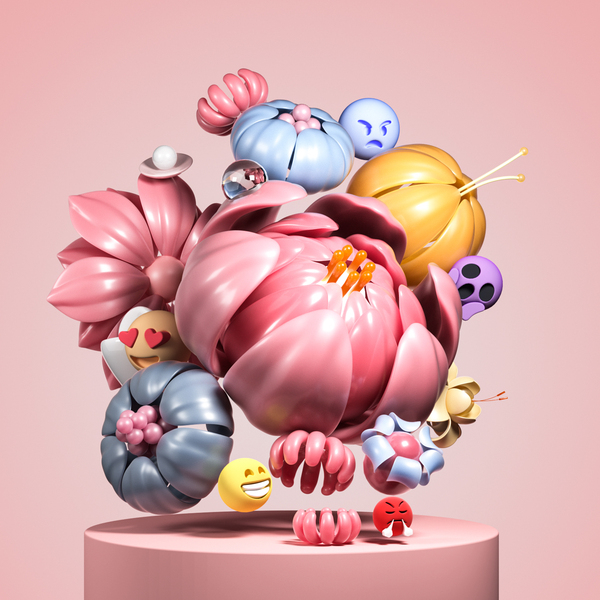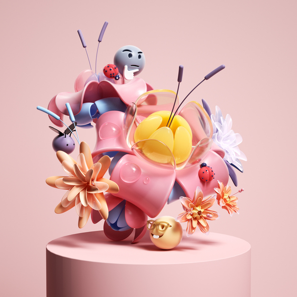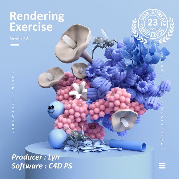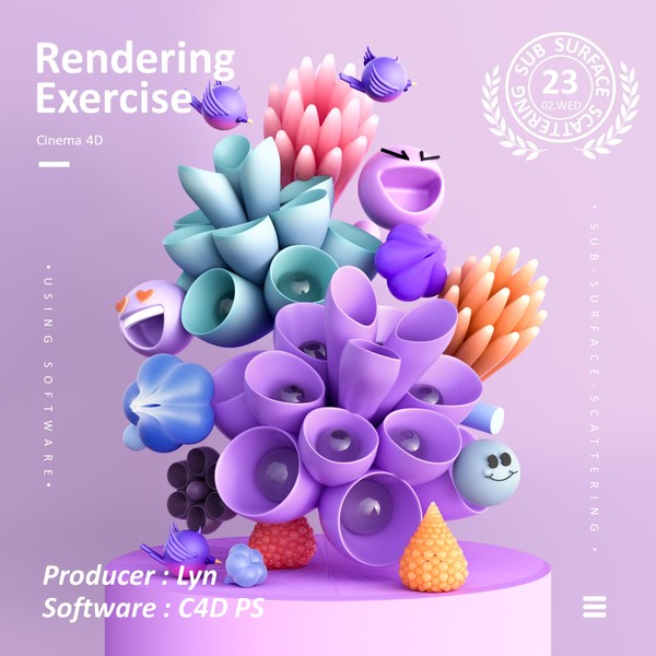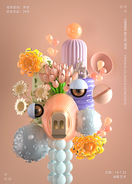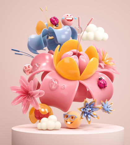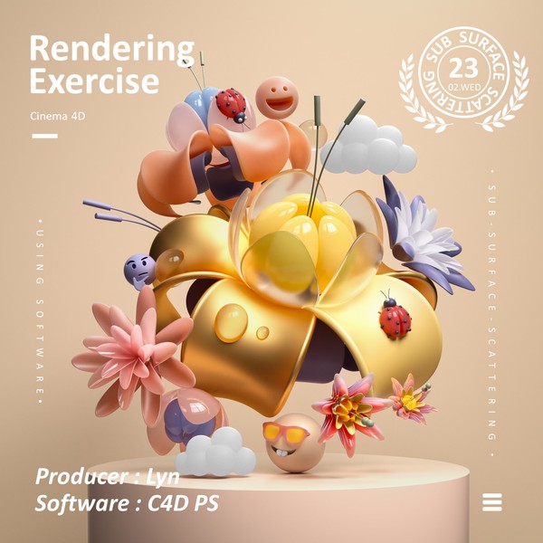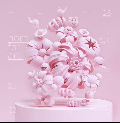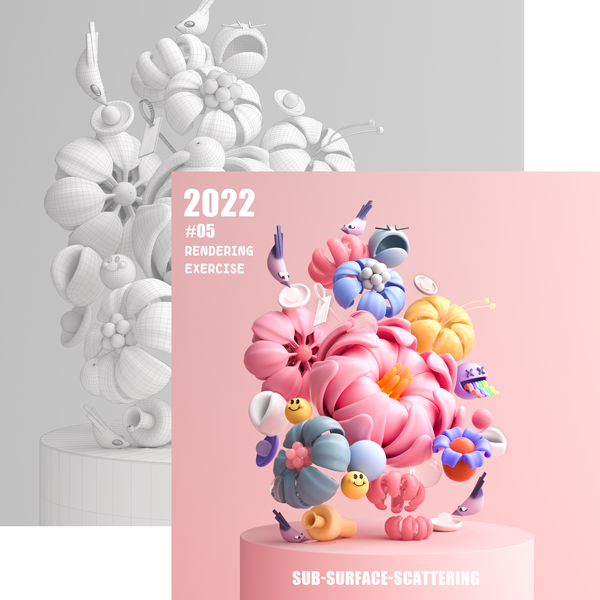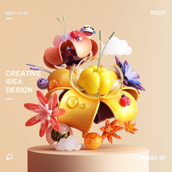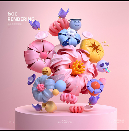 八月的3D练习,创意花瓣场景和酒瓶渲染