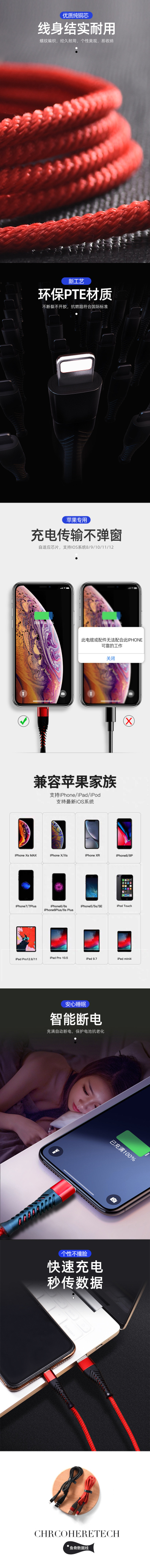 锌合金数据充电线详情页设计三维建模渲染+精修