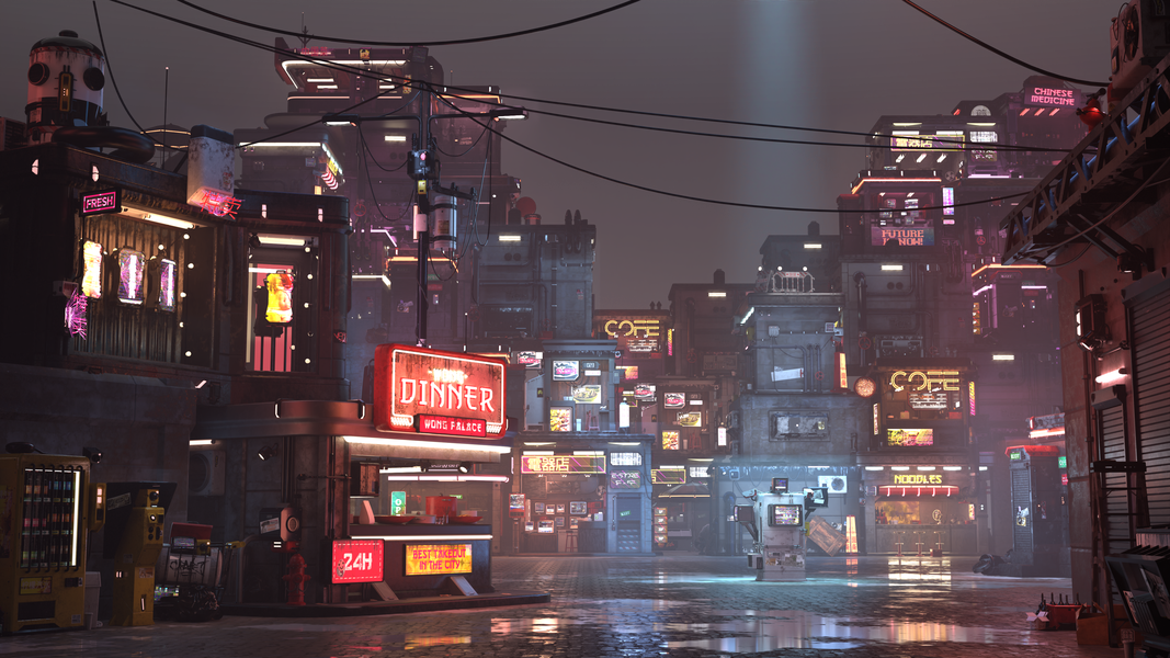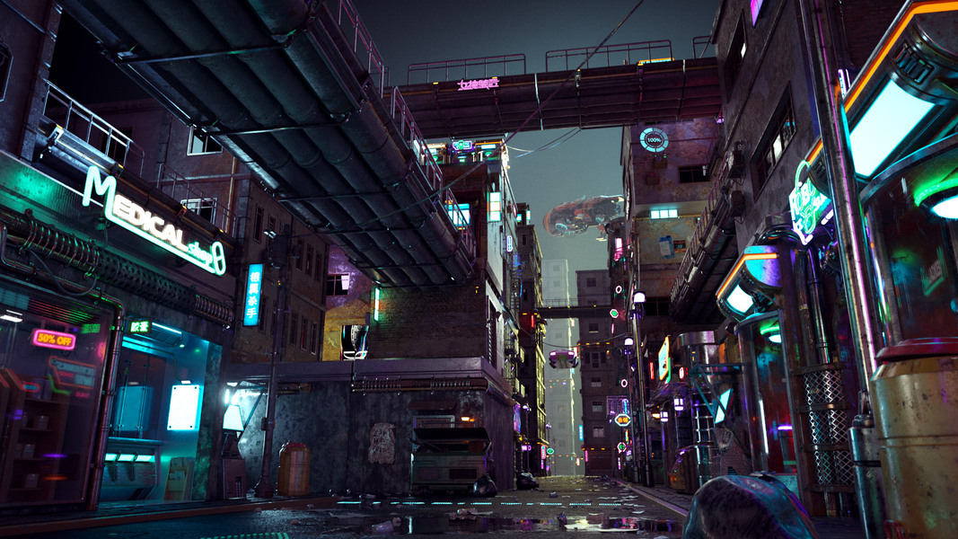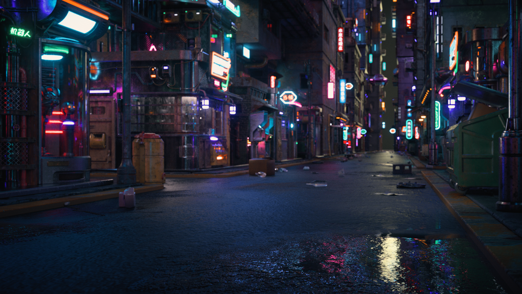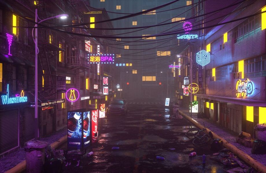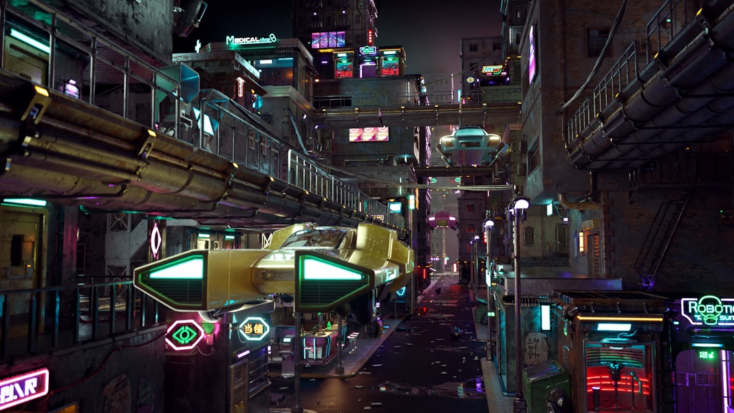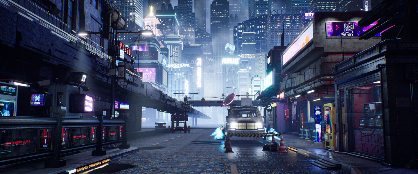 虚幻引擎_地编作品_赛博朋克_下雨_EasyRain_光效