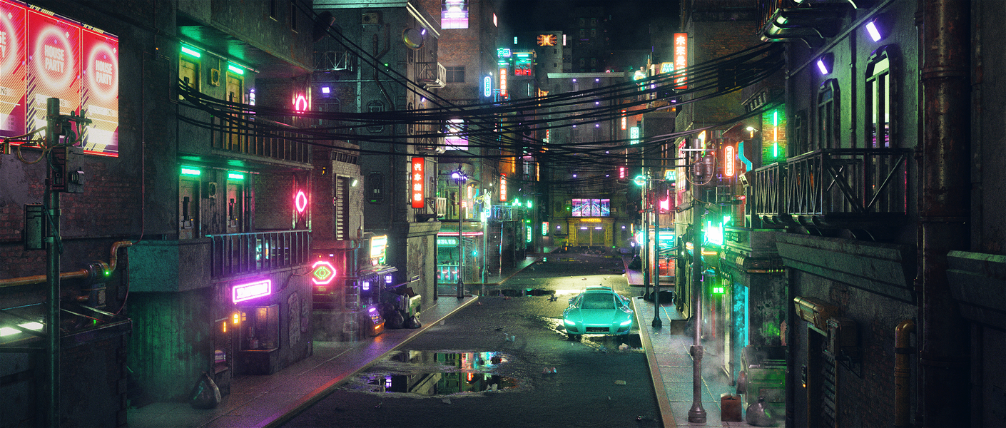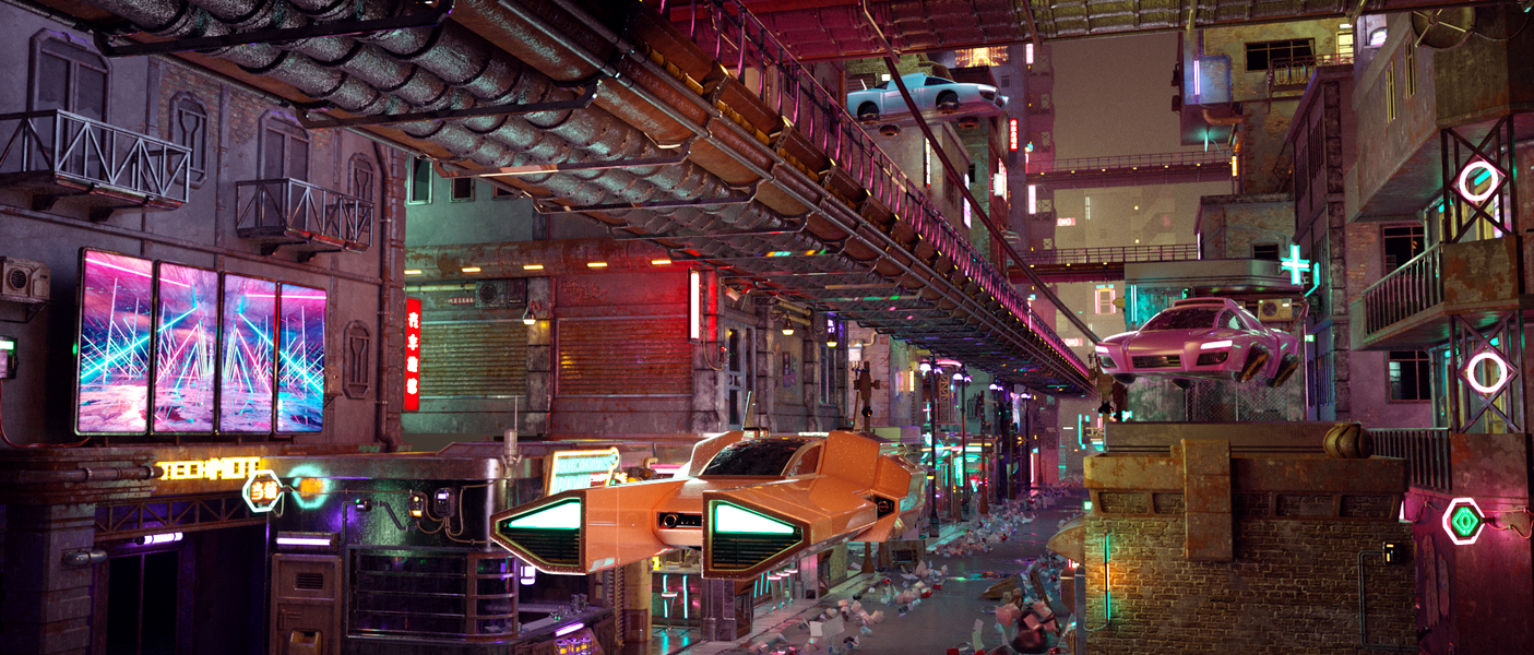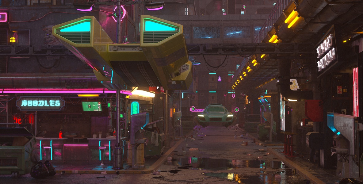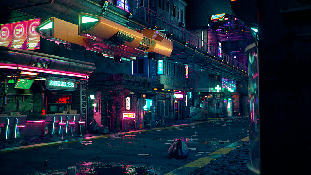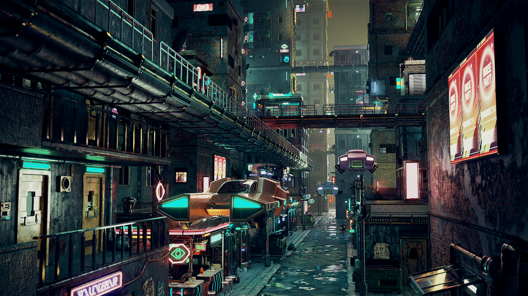 虚幻引擎_地编作品_赛博朋克_下雨_EasyRain_光效