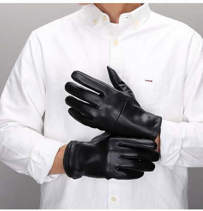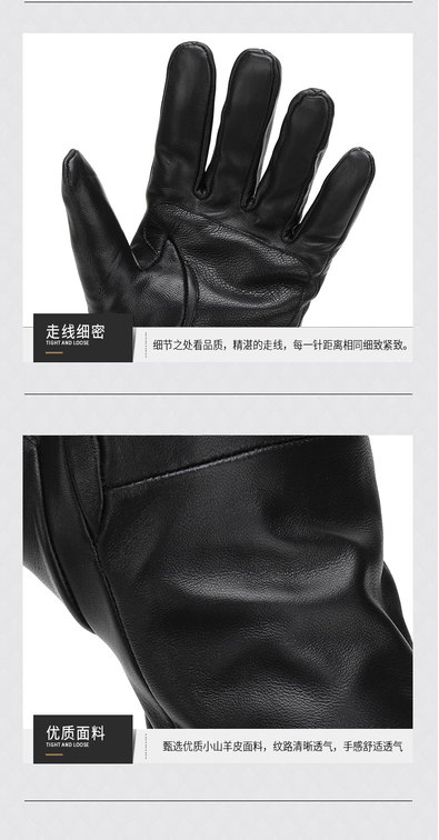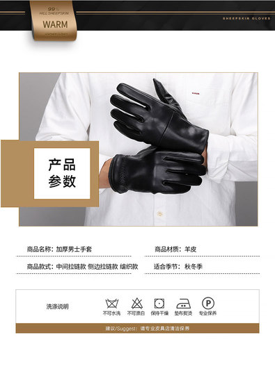 秋冬季男士牛皮手套双层加厚羊毛内里明缝舒适保暖