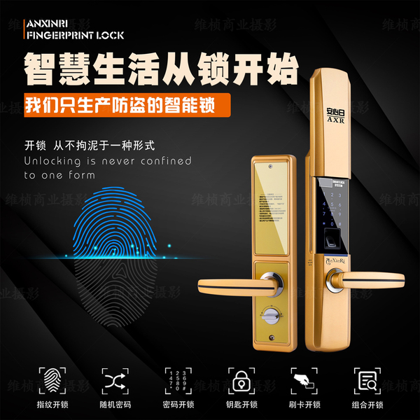 西安家用电器拍摄精修设计 智能门锁拍摄主图设计