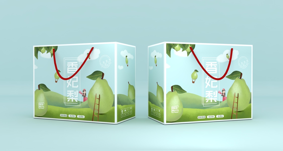 梨子水果通用包装盒、清新风格、橙子苹果橘子车厘子