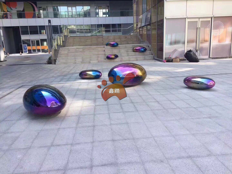 广场彩色不锈钢石头雕塑、户外七彩不锈钢水滴艺术摆件