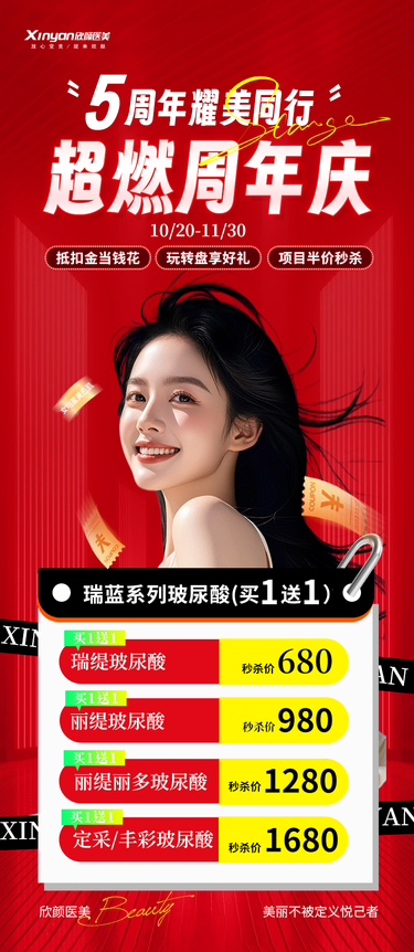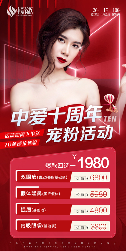 医美整形周年庆促销活动项目海报美容朋友圈图