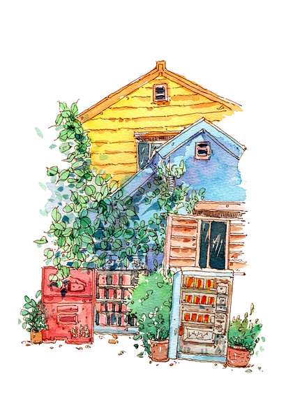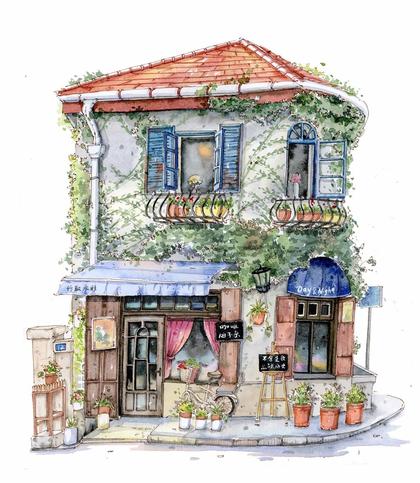 被绿色藤蔓环绕的老房子咖啡店--不舍昼夜