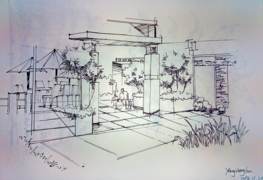 OCT华侨城十号院庭院景观手绘临摹作品杭州手绘培训