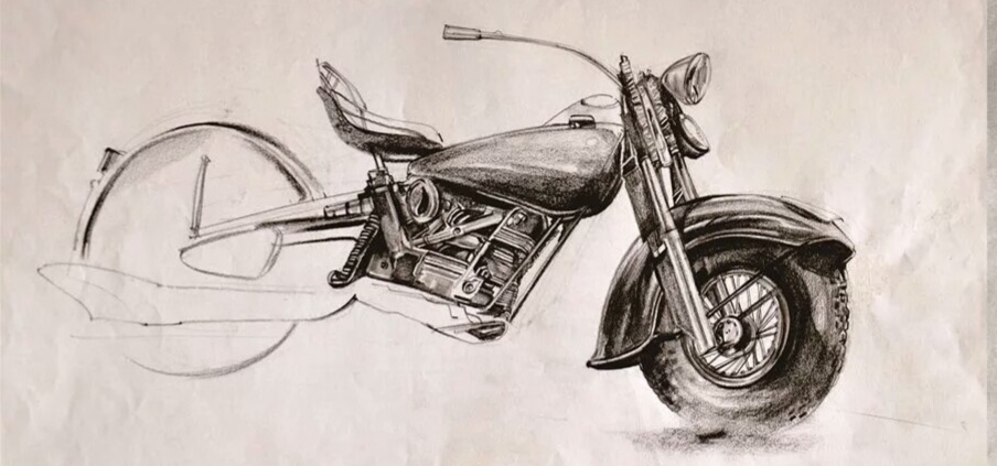 摩托车素描步骤图解