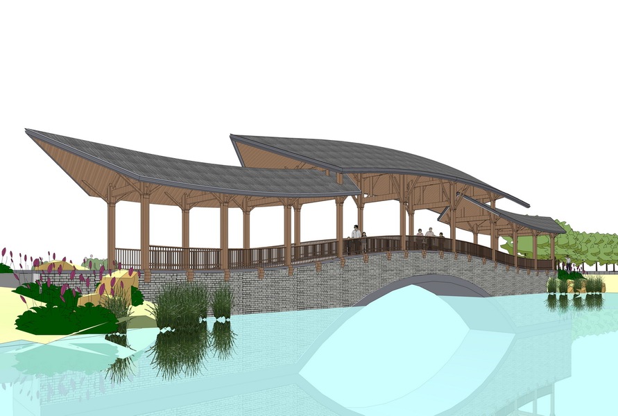中式廊桥风雨桥SU模型下载