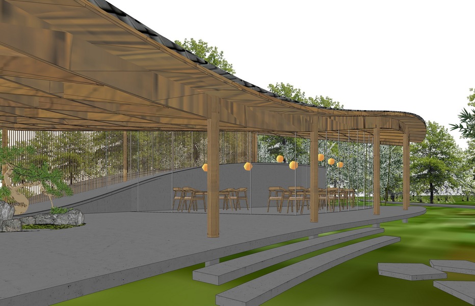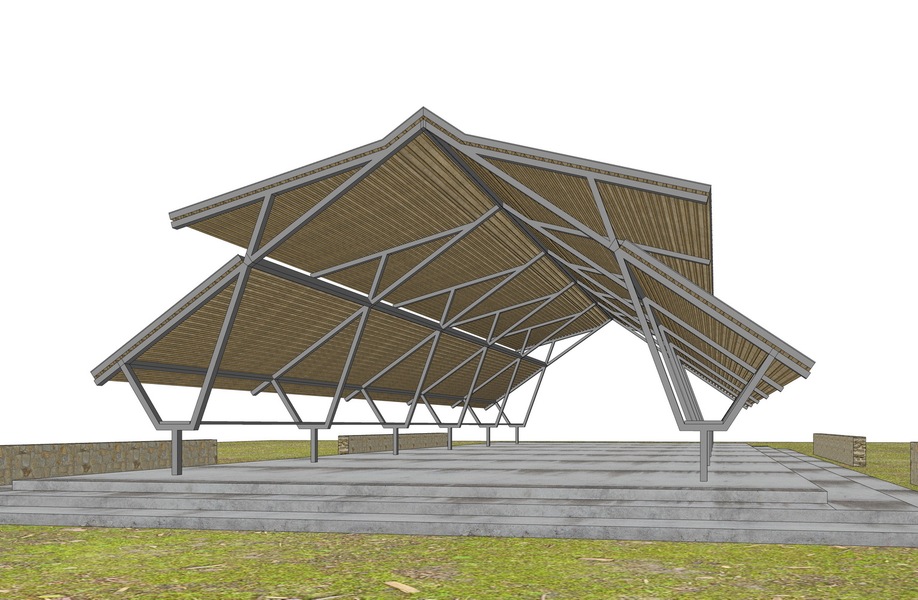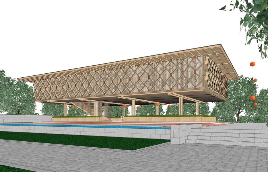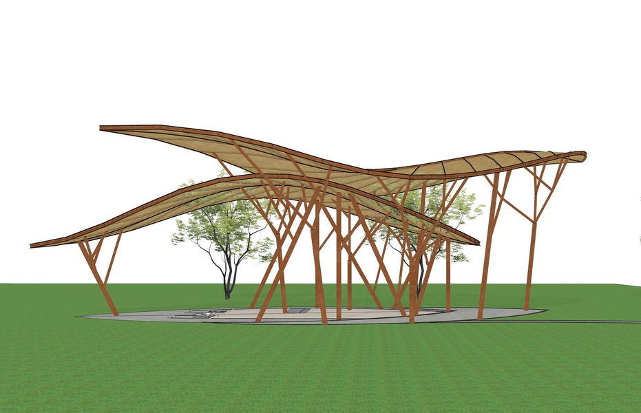 竹结构竹亭SU模型下载