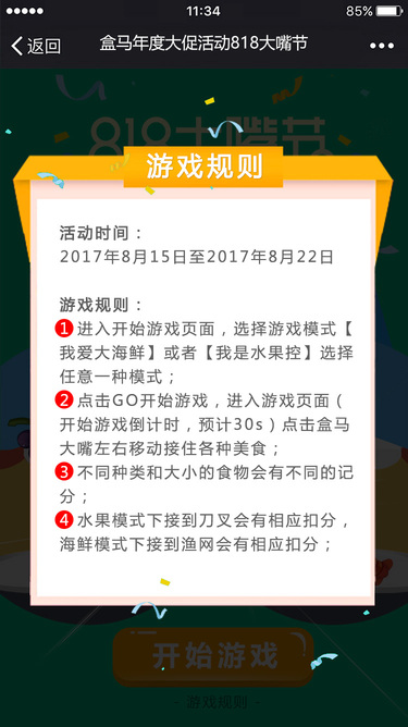 盒马生鲜818大嘴节H5