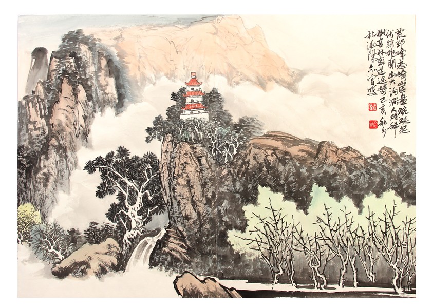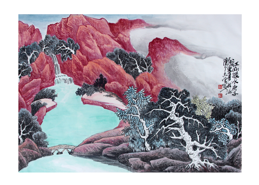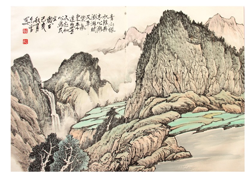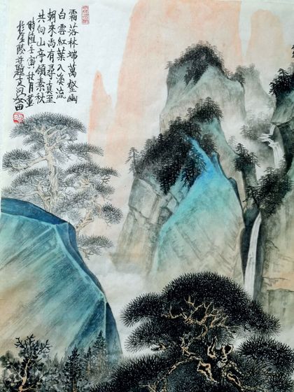 李树林青绿金碧山水画