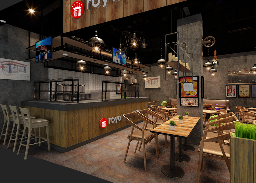 奶茶店铺设计效果图甜品店咖啡店设计餐饮店茶饮店设计