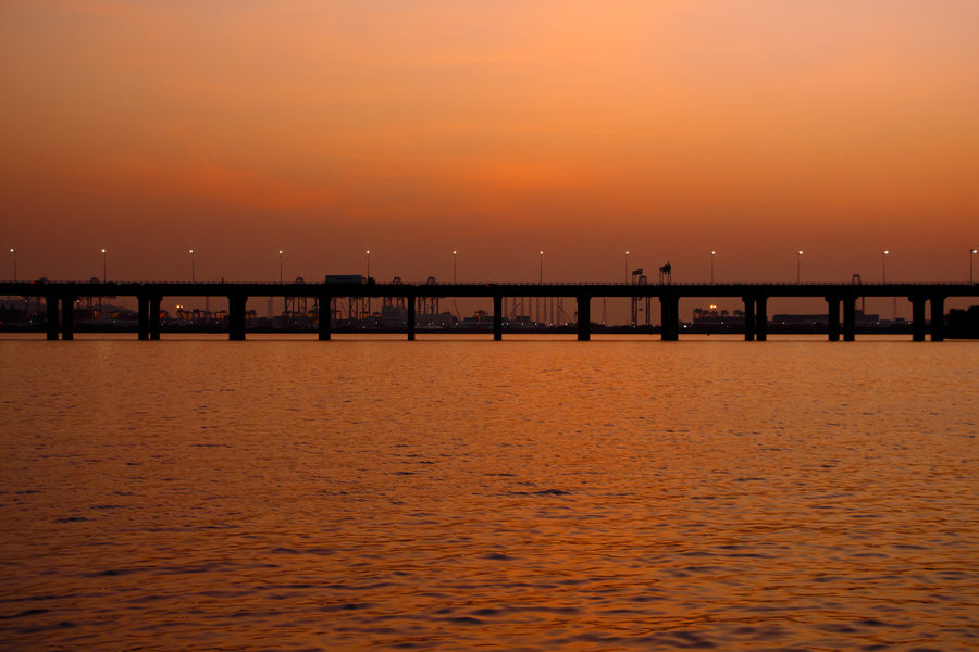 深圳湾公路大桥,接住下午三点的橘色阳光