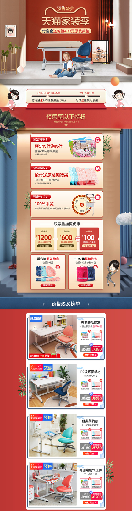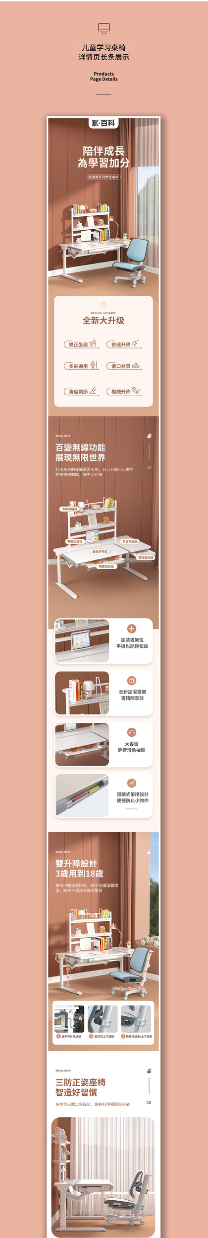 儿童学习桌套餐建模渲染+详情页设计