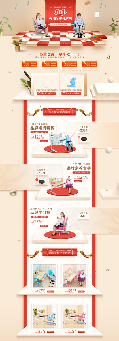 四款学习桌椅详情页