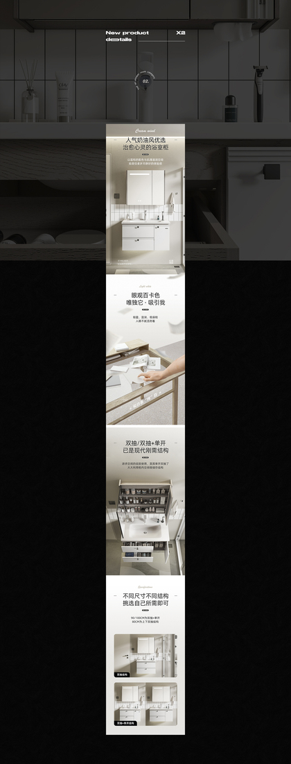 奶油风浴室柜详情页