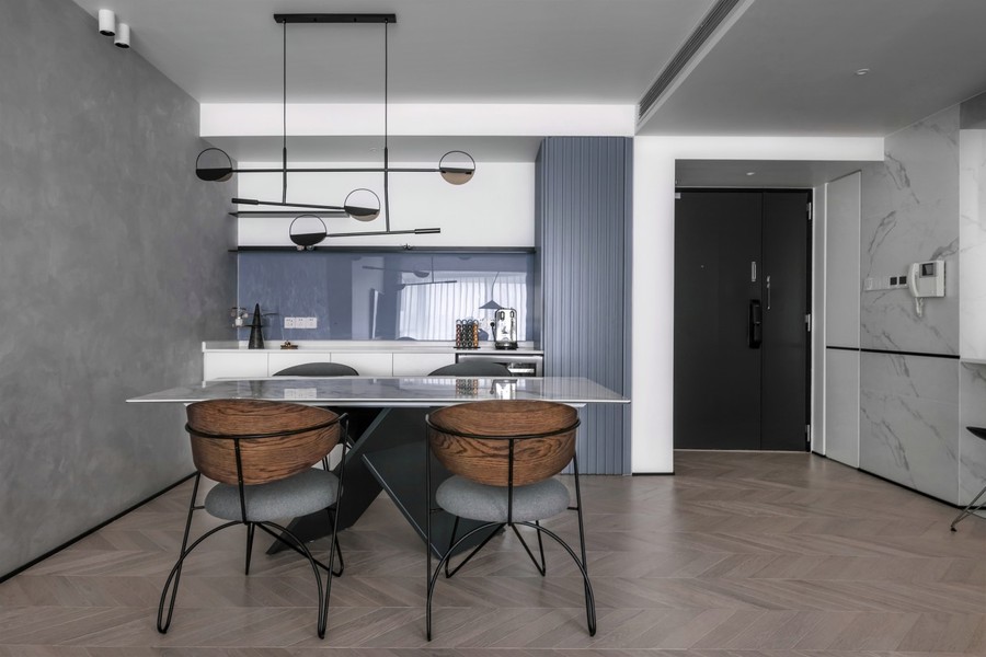 浅灰与原木设计,营造103m²三室一厅静谧感十足居所