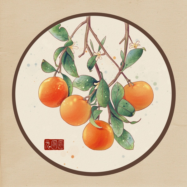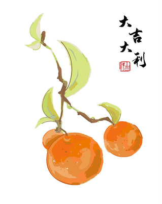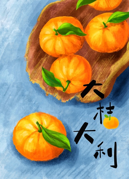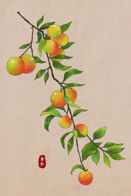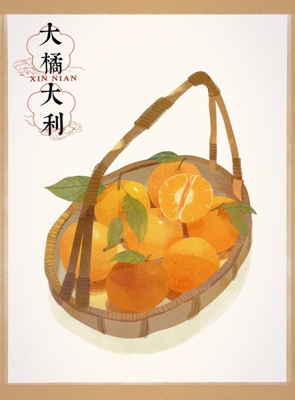 中式国风水果插画大吉大利