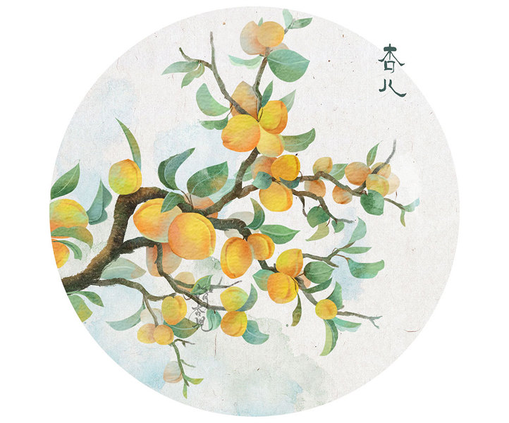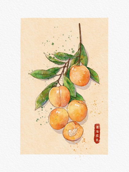 小清新国风水彩水果插画