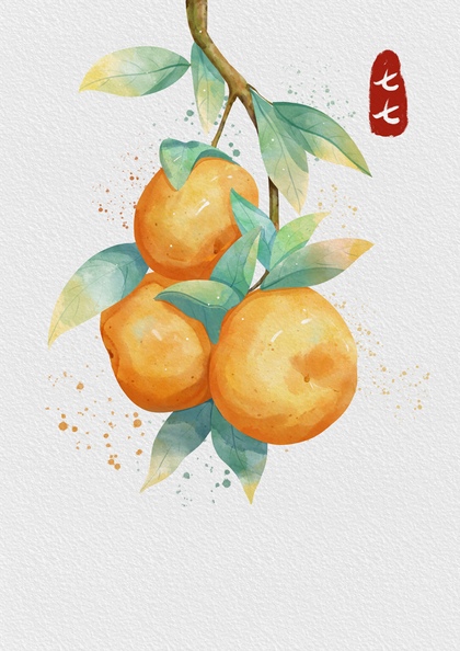 水彩风 水果插画 枇杷 桔子 石榴 柿子
