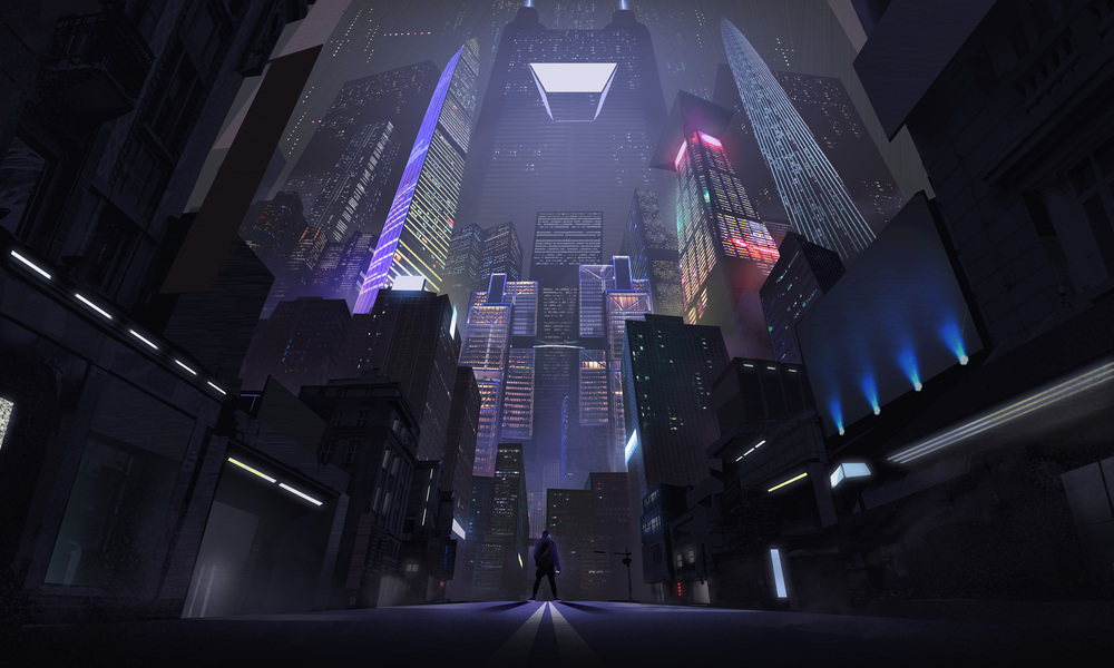 #wow+数字艺术nft赛博朋克数字世界高层建筑群概念设计